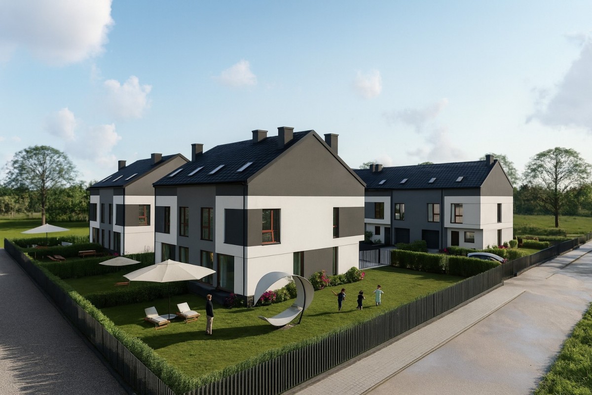 Proponowany dom na sprzedaż w zabudowie szeregowej (stan deweloperski), na nowym, zamkniętym osiedlu.