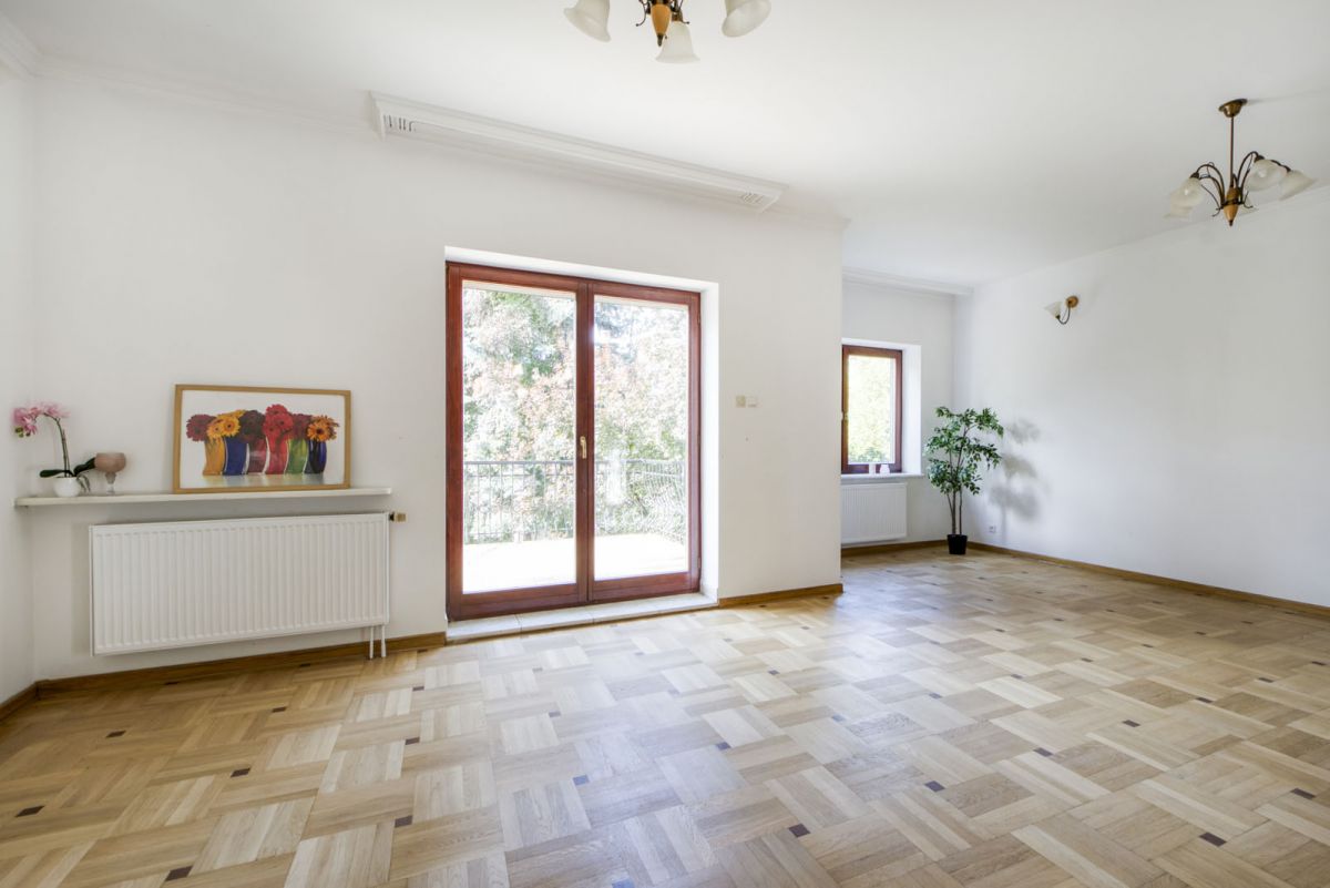 - Solidna konstrukcja i jakość wykonania - cegła, marmurowe detale, drewniane podłogi, kominek z marmuru, parapety z kamienia,