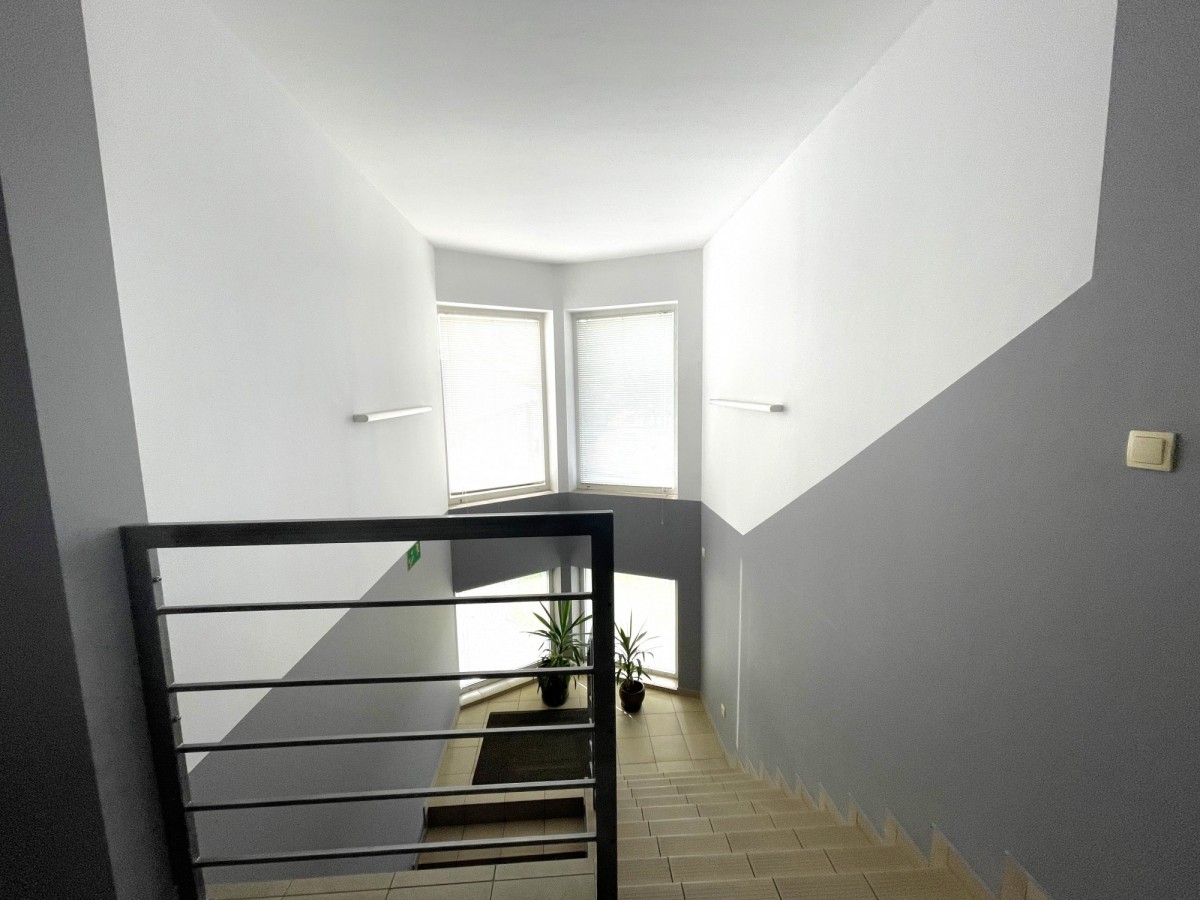 Biuro mieści się na pierwszym piętrze kameralnego budynku (bez windy). To idealne rozwiązanie dla firm ceniących ciszę i komfort pracy z dala od zgiełku i zakorkowanych ulic Warszawy, a jednocześnie w doskonałej lokalizacji pod względem dojazdu.