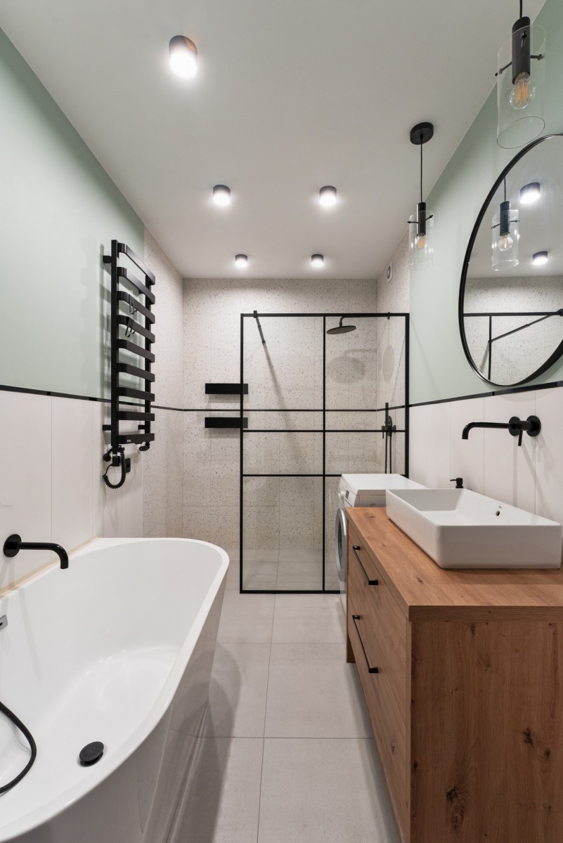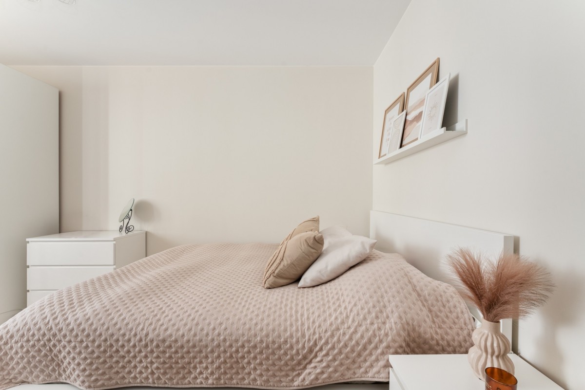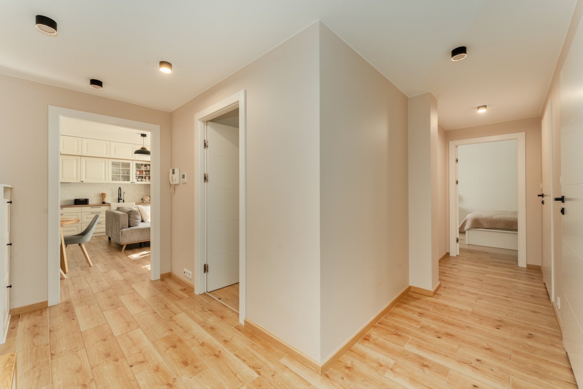 Dbałość o szczegóły wykończenia zapewniają wygodę i komfort, a spójna kolorystyka sprzyja atmosferze wyciszenia i relaksu. Panoramiczne, duże okna czynią wnętrze bardzo jasnym i dobrze doświetlonym.