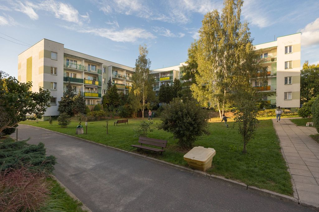 Spokojne, ogrodzone osiedle z niską zabudową, estetyczne klatki schodowe
