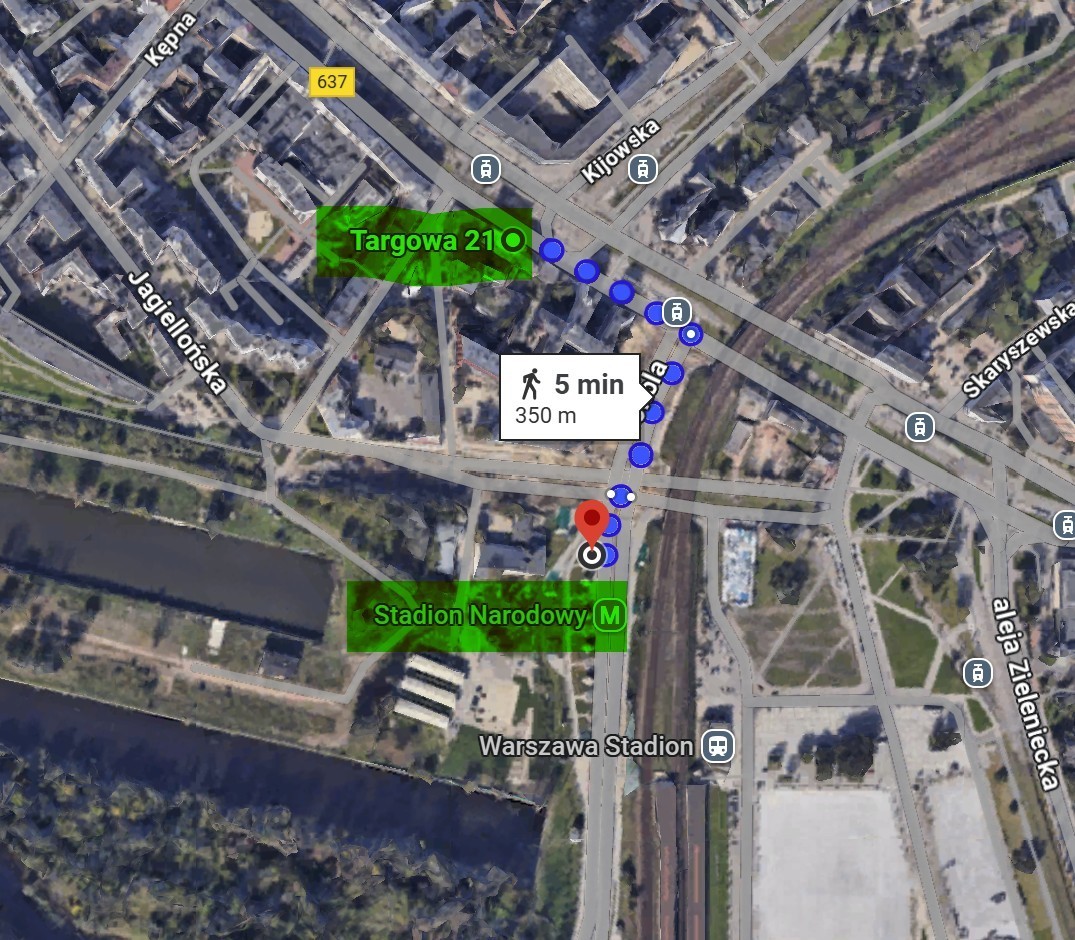 The tenement is located in the heart of Stara Praga - surrounded by full commercial and service infrastructure, with excellent transportation connections to all parts of Warsaw. The Stadion Narodowy metro station is just a 5-minute walk away.