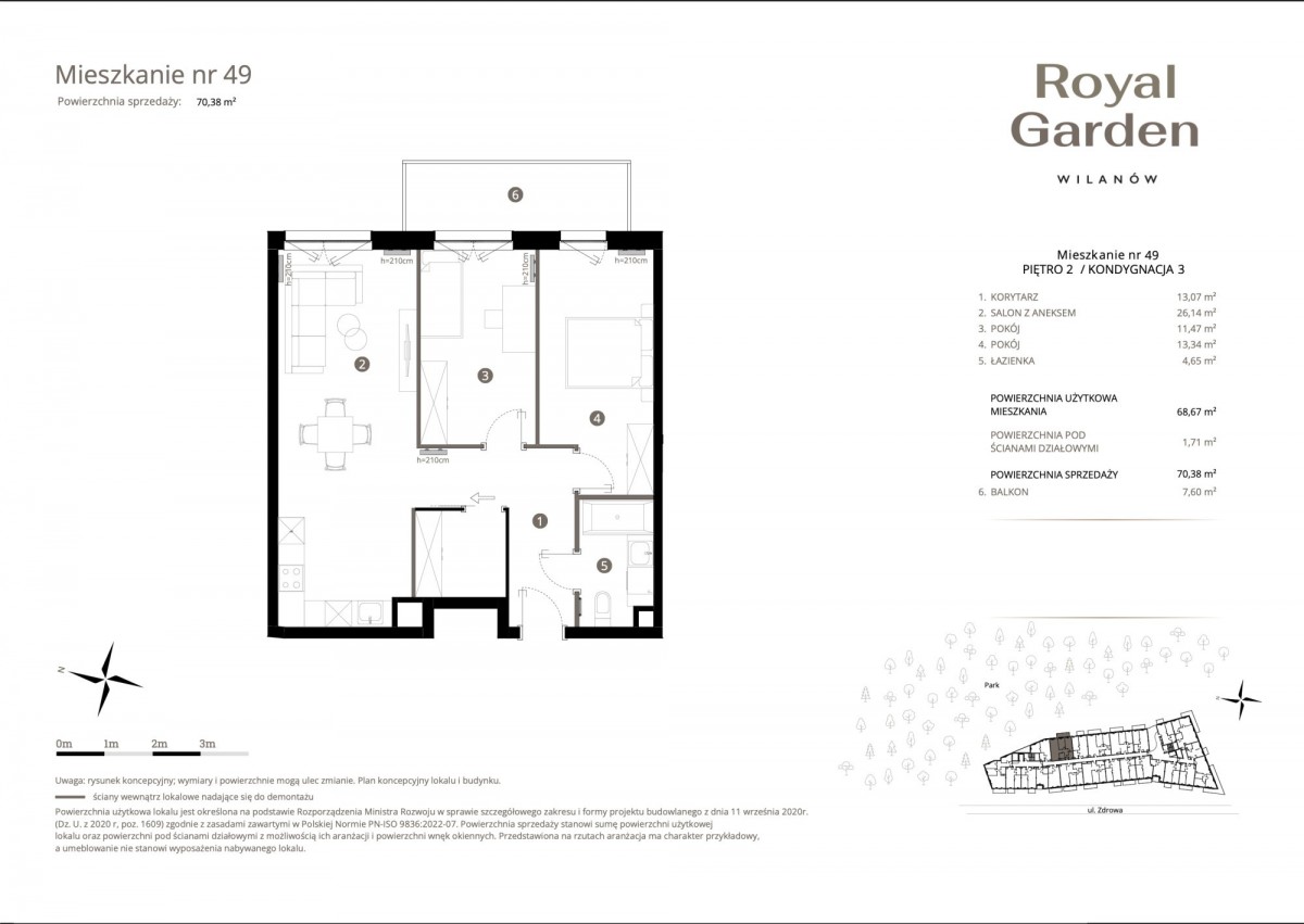 Oferowany apartament o powierzchni 68,67 m² obejmuje: