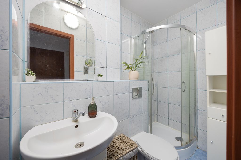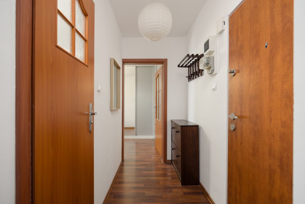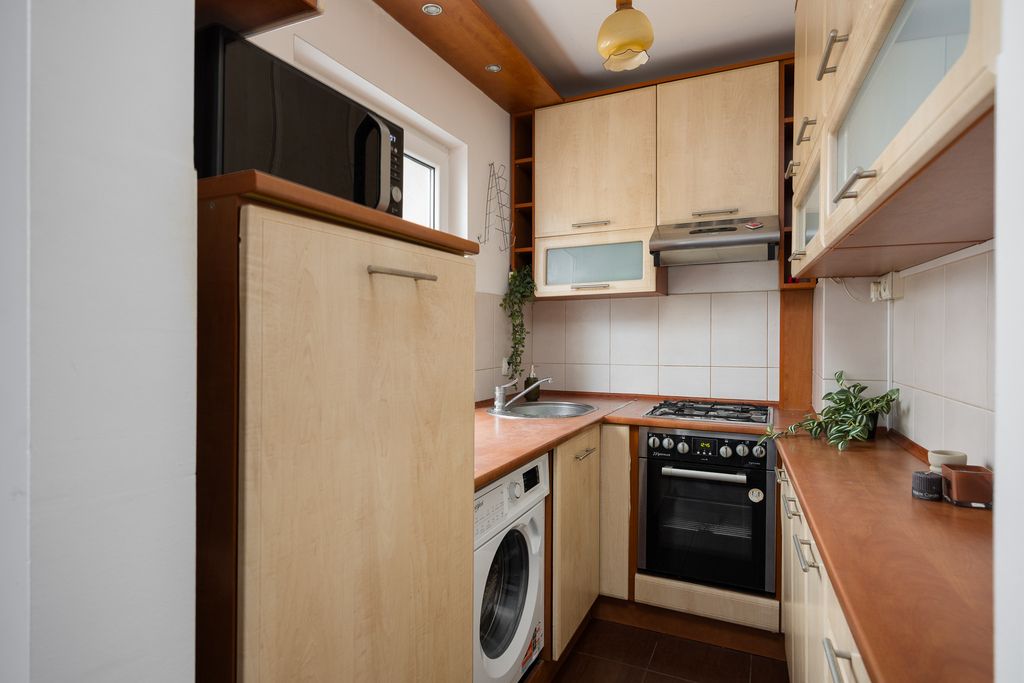 W lokalu przeprowadzono remont, podczas którego wymieniono m.in. okna, instalację elektryczną oraz podłogi. Ekspozycja okien na zachód oraz ostatnie piętro sprawiają, że mieszkanie jest słoneczne i ciche. Ciepła woda oraz ogrzewanie pochodzą z sieci miejskiej. Gaz doprowadzony jest wyłącznie do kuchenki. Wyposażenie widoczne na zdjęciach – w tym meble oraz sprzęt RTV/AGD mogą pozostać w cenie mieszkania. Dodatkową przestrzeń do przechowywania zapewnia piwnica ok. 3 m².