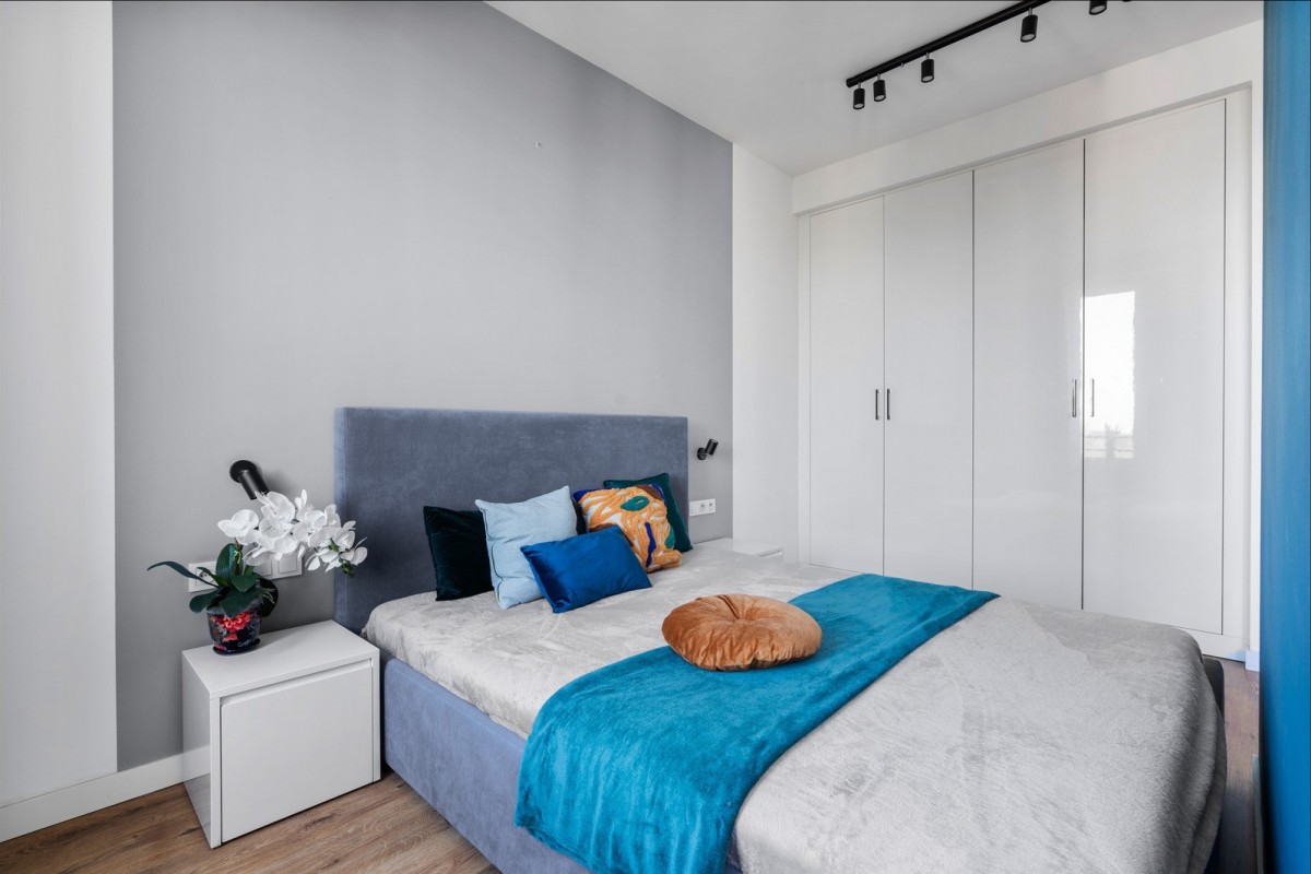 - Sypialnia (częściowo wydzielona, dzięki czemu wnętrze przybiera na przestrzeni);