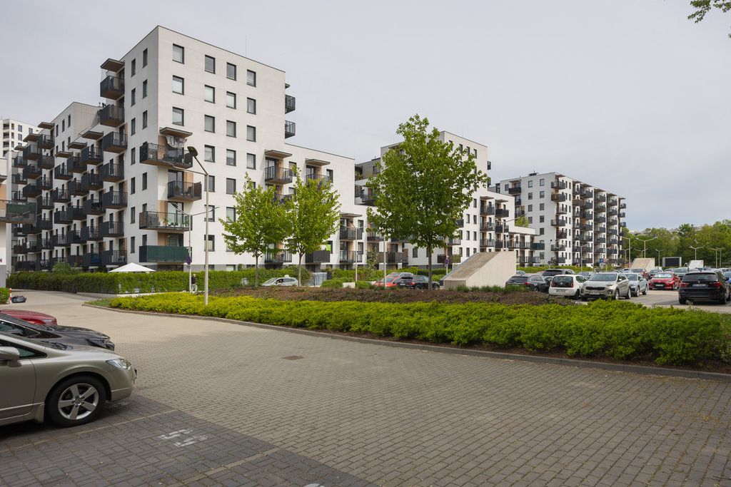Nowoczesne dwupokojowe mieszkanie z ogródkiem na warszawskiej Woli położone na parterze siedmiopiętrowego budynku z windą z 2019 roku przy ul. Fort Wola 12B.