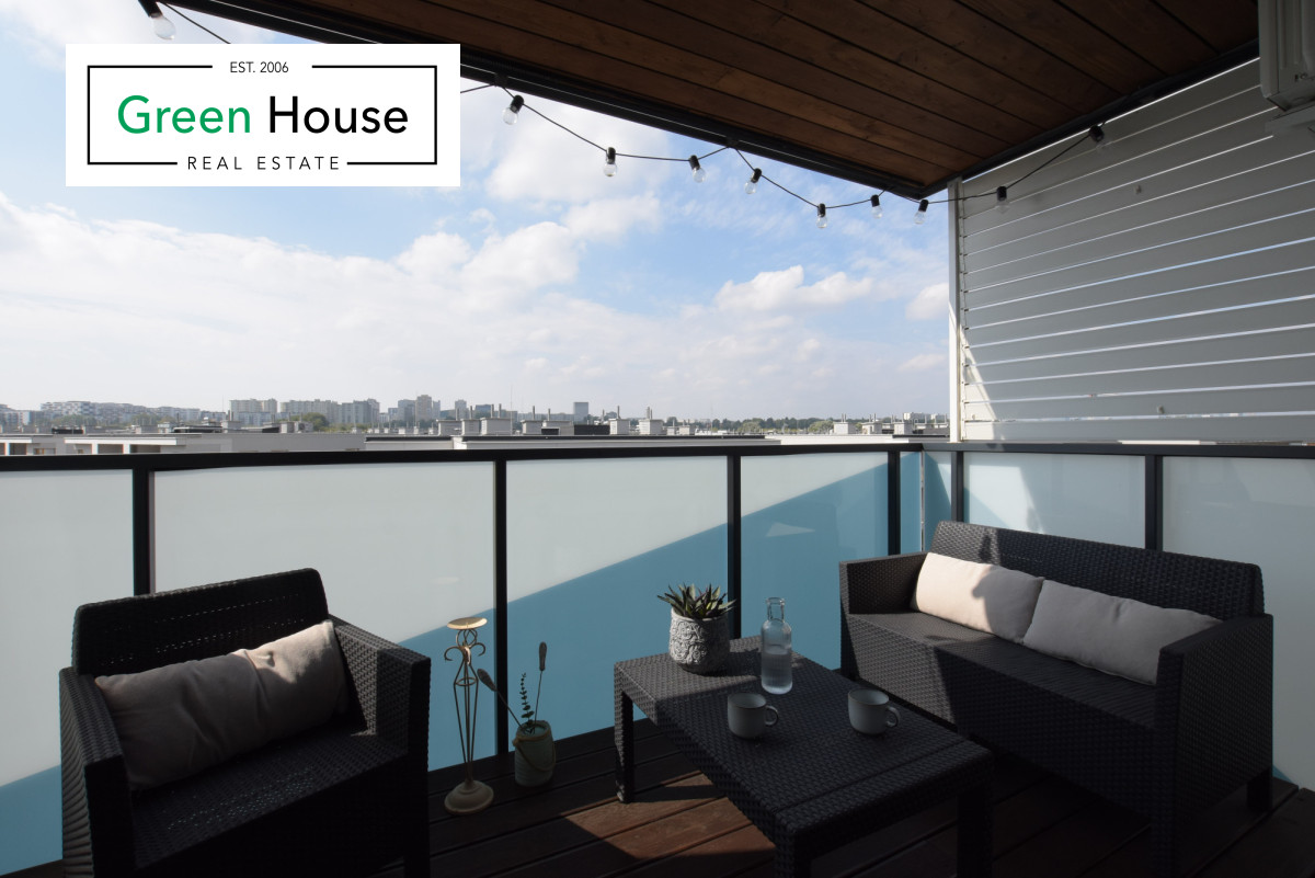 Atrakcyjne 3 pokoje, w pełni wyposażona kuchnia, taras z widokiem na panoramę Warszawy gwarantujący relaks i piękne widoki.