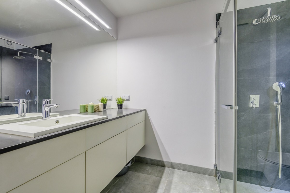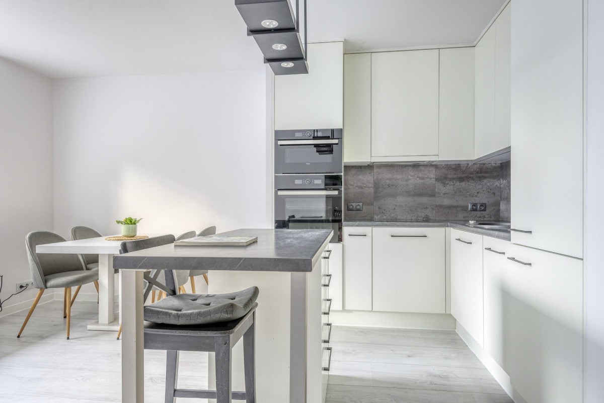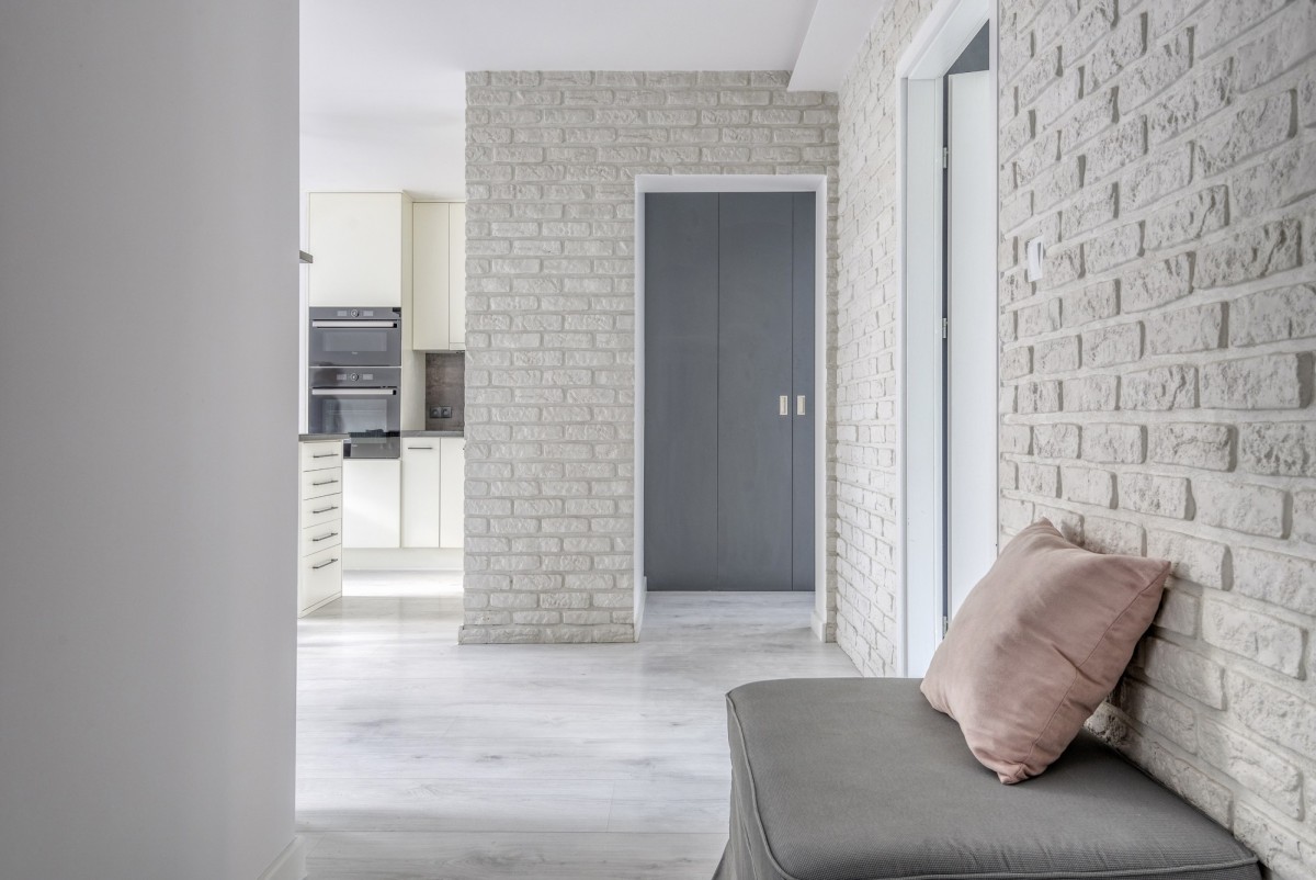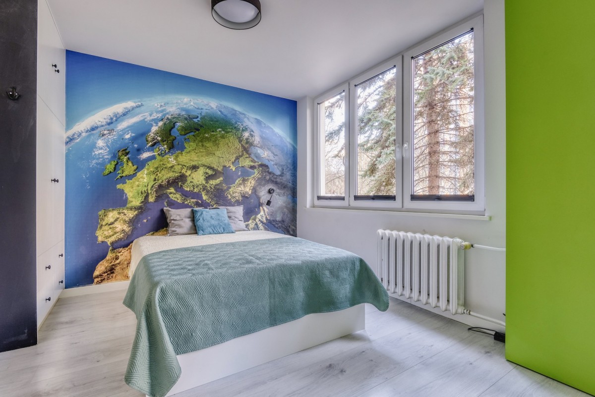 W mieszkaniu trzy oddzielne sypialnie (w tym jedna z prywatną łazienką), salon z otwartą kuchnią, garderoba i pojemne szafy.